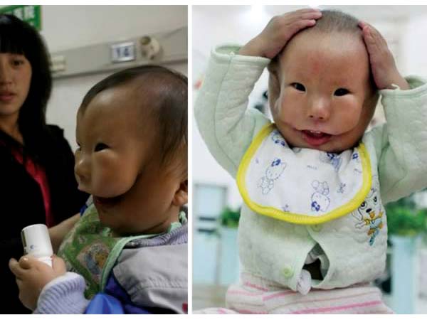 এযেন ঠিক একেবারে রক্ত-মাংসের মুখোশ। চিনের বাসিন্দা কাংকাং নামে এই শিশুটির জন্মের সময়ে এমন অবস্থাই ছিল। তবে শল্য চিকিৎসার মাধ্যমে শিশুটিকে সুস্থ করে তোলা গিয়েছে বলে জানা গিয়েছে।