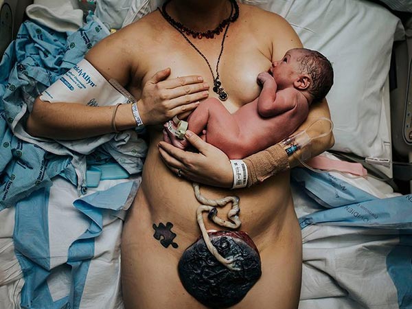 এই ছবিতে দেখতে পাচ্ছেন মা কীভাবে সবে মাত্র জন্ম নেওয়া বাচ্চাটিকে আদর করছেন। এমনকী বাচ্চার আমবিলিকাল কর্ডও তখনও কাটা হয়নি।